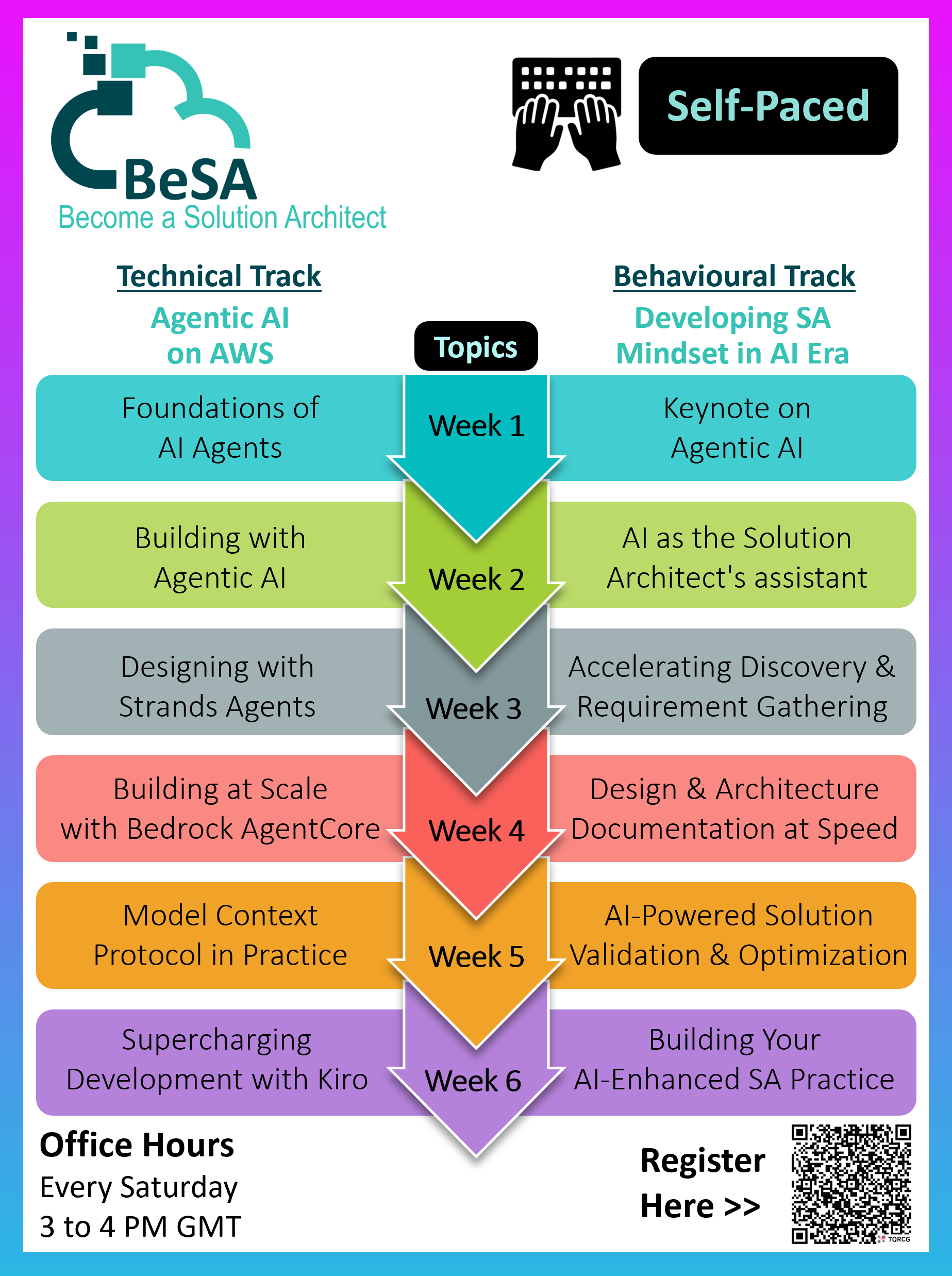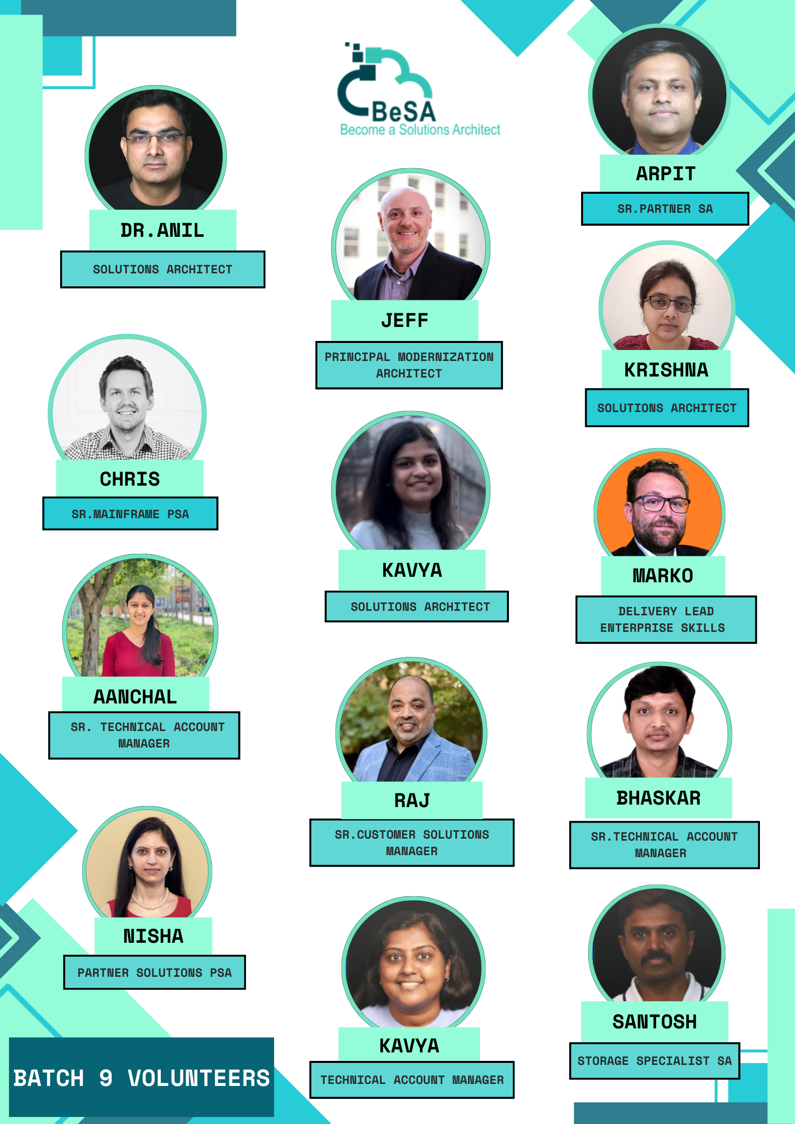 BeSA (Become a Solutions Architect) is a 6-week free mentoring program, focusing on both technical and the behavioral skills to help you excel in your cloud and AI career journey.